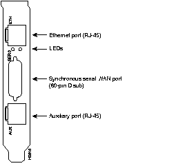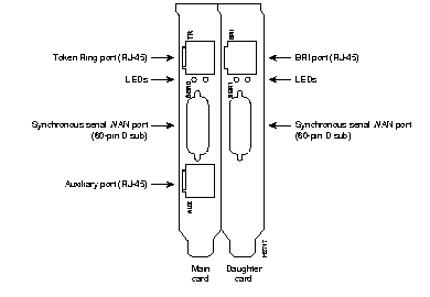 The ports for the Ethernet or Token Ring, serial, and auxiliary connections are located on the rear panel of the main card and the daughter card. (See Figure 2-1, Figure 2-2, Figure 2-3, and Figure 2-4.)
