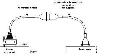 On systems with an Ethernet port, the Ethernet port is located to the right of the console and auxiliary ports. (See Figure 2-3.) Standard 15-pin Ethernet transceiver cables and IEEE 802.3 attachment unit interface (AUI) cables can be used to connect to your network. An 18-inch transition cable is provided for each Ethernet port. This cable provides flexibility for alternate connection configurations. Three configurations are possible: