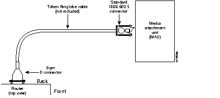 On systems with a Token Ring port, the Token Ring port is located to the right of the serial port. (See Figure 2-2.) Use a standard 9-pin Token Ring lobe cable (not supplied) to connect the router directly to a media attachment unit (MAU). (See Figure 2-6.)