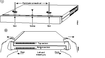 Step 6 If required, insert a medium-size flat-blade screwdriver into the slots shown in Figure 1, Part A, and rotate the blade so that the top and bottom sections separate slightly.