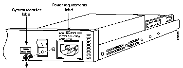 Step 4 Place the System Identifier label directly to the left of the on/off power switch on the rear panel of the Cisco 2500 series router. (See Figure 11)