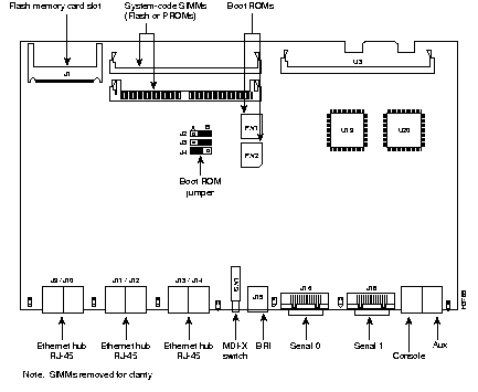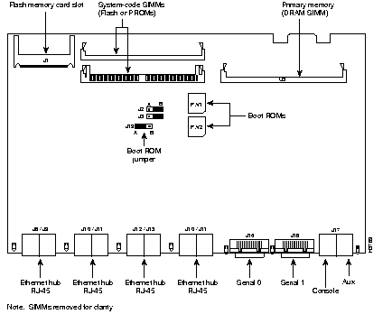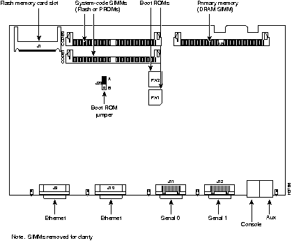 Step 4 If your system is set to boot from Flash ROMs, you'll need to change the boot ROM jumper setting so that the router will boot from the mask ROMs. (The position of the boot ROM jumper determines if the router will boot from Flash ROMs or mask ROMs.) Table 2 lists the boot ROM jumper numbers, if any, and the figures that show their locations.