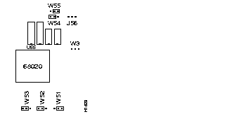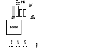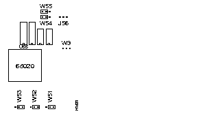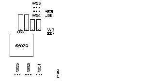 Step 6: Change the jumper settings on jumpers W51 - W55 as indicated in Figure 3-3, Figure 3-4, Figure 3-5, or Figure 3-6. Jumpers W51 - W53 are located next to the EPROMs. Jumpers W54 - W55 are located below the MC68020.