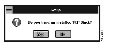 Step 6 The installation process inquires whether you have a Transmission Control Protocol/Internet Protocol (TCP/IP) stack installed on your computer. The TCP/IP Stack Inquiry dialog box is displayed, as shown in Figure 2-2.