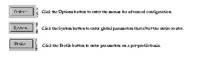 To configure your router, use the System button and follow the procedures in the Global Configuration dialog box.