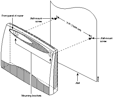 Cisco 1600 series routers can be wall-mounted with two number-six, 3/4-inch screws (not included) and the molded mounting brackets on the bottom of the router (see Figure 3-7).