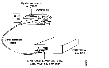 Step 1 If you have a serial WAN interface card or an A/S serial module, use a serial transition cable to connect a serial port (DB-60) to a modem or to a CSU/DSU. (See Figure 3-24 and Figure 3-25.)
