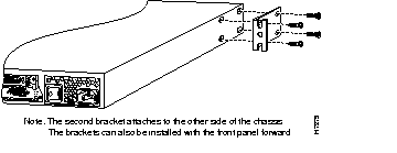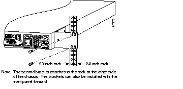 To install the chassis in a rack with the front panel forward, attach the brackets on each side of the chassis as shown in Figure 3-2 or Figure 3-3.