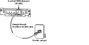 To connect a switched 56 WAN interface card to a network, use a straight-through RJ-48S-to-RJ-48S cable to connect the four-wire RJ-48S port to an RJ-48S jack. (See Figure 3-36.)