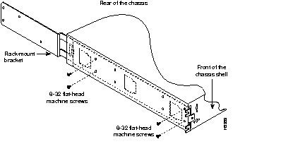 Step 2 Fasten the brackets to each side of the chassis shell with the 8-32 flat-head machine screws provided (see Figure 9 and Figure 10). Only four 8-32 flat-head machine screws are required for each bracket.