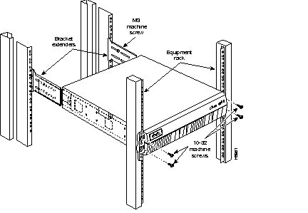 Step 1 On the rear of the rack, insert two 10-32 machine screws through the slots of the extenders and thread them into the rack-mount threaded holes (see Figure 11).