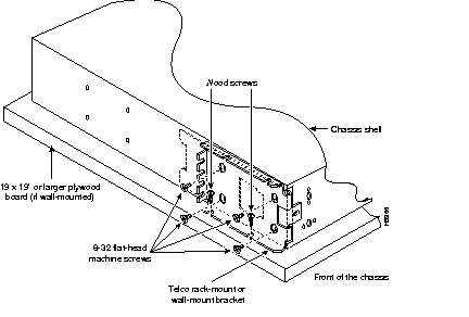 Step 1 Install the wall-mount brackets following the procedures described in the section "Preparing the Chassis for Rack-Mounting or Wall-Mounting" and "Overview of Telco Rack-Mounting and Wall-Mounting."