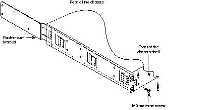 Step 3 Mount the front of the chassis shell in the rack using two 10-32 machine screws on each side of the front brackets.