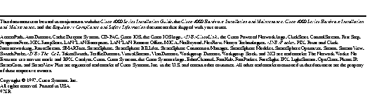 If you have a Cisco 4500-M or Cisco 4700-M router, use this document with the Cisco 4000 Series Installation Guide and the Regulatory Compliance and Safety Information (previously known as the Cisco 4000 Series Public Network Certification) document that shipped with your router. If you have a Cisco 4500 or Cisco 4700 router, refer to the Cisco 4000 Series Hardware Installation and Maintenance publication.