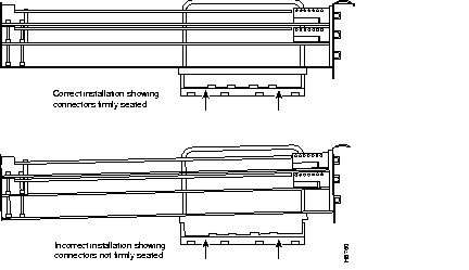 ![]() | Caution If any of the network processor modules have daughter cards projecting at right angles to the module (see Figure 10), do not bend the module during installation. Bending the module might cause the daughter cards to become disconnected. If this happens, carefully reseat the daughter card connectors by handling the card by its edges without touching any of the components on the card. |