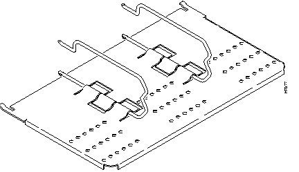 ![]() | Time Saver If you push on the protruding rivet legs from the underside of the cable support tray, the rivet does not come loose. Use a sharp object to push the center rivet pin up through the cable support tray and U-shaped cable support clamp. |