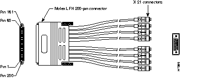| CAB-OCT-X21-FC | DTE mode--Molex LFH 200-pin connector and a DB-15-pin X.21 receptacle | Figure 20 and Figure 17 |