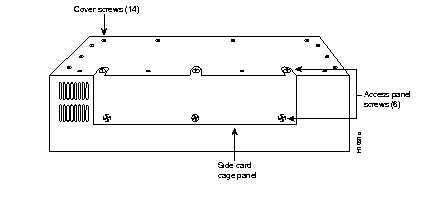 C chassis only--Reinsert the remaining card in the card cage and reconnect all cables. Reattach the card clamps at either end of the card cage and replace the top chassis cover using all removed screws (see Figure 3).