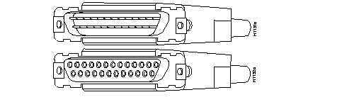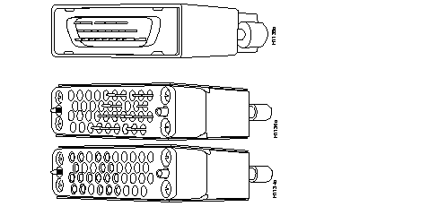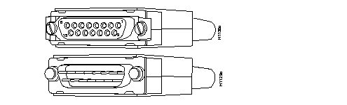 The HD V.35 cable is available in four models: DTE male to male, DTE male to female, DCE male to male, and DCE male to female. The chassis connector (shown at the top of Figure 3-2) is always a male HD-26 connector, while the network end can be a male or female Winchester-type 34-pin connector.