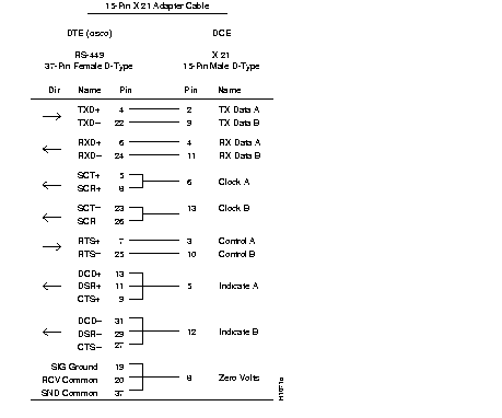 Figure A-13 provides the pinout for constructing an X.21 to RS-449 transition cable. This is of particular importance for X.21 connections in the United Kingdom and Germany.