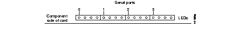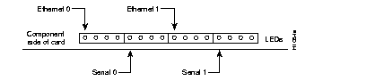 The CSC-MCI and CSC-SCI cards contain a bank of 16 LEDs. (Four are currently used.) Table B-2 lists the LEDs that are used and the serial and Ethernet port each LED represents. LED 0 is at the left end of each block of four LEDs (as you view the front edge of the card in the system card cage--shown in Figure B-4 and Figure B-5). At startup, all LEDs flash and then only those LEDs that indicate active interfaces will stay lit. A problem is indicated if all LEDs remain lit after the system boots, or if the LED of a specific interface does not stay lit after the system boots.