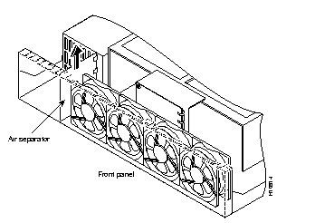 Step 7 Replace the air separator as shown in Figure A-31, holding all cables to the right of the separator as you slip it into the chassis.