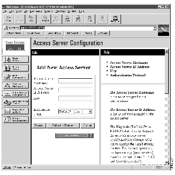 Access Server IP Address--IP address of the NAS configured to work with the CiscoSecure ACS.