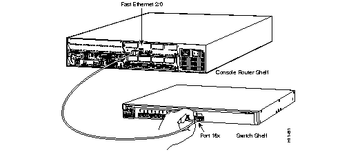 Step 2 Connect the cable labeled CRS01-FE2/0 to the Fast Ethernet port in slot 2 of the Console Router Shelf. Connect the other end of this cable, labeled FHUB-ETH16, to port 16x of the Switch Shelf, not port 16 (see Figure 8).