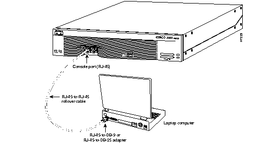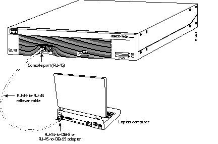 Step 1 Connect the terminal using one of the thin, flat, RJ-45-to-RJ-45 rollover cables (which look like telephone cables) and an RJ-45-to-DB-9 or RJ-45-to-DB-25 adapter (labeled "TERMINAL") included with each of the components (see Figure 10).