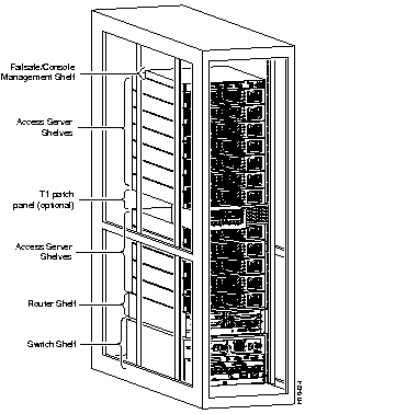 Compare your system to the one shown in Figure A-7. If your configuration looks like this (that is, if there are more than 10 Access Server Shelves), use the procedure to remove the Access Server Shelves.