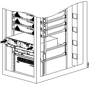 Step 3 Slide the Access Server Shelf into the rack using the preinstalled slide rails as guides. See Figure A-4.