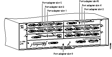Port adapter slots in the Router Shelf are numbered from left to right, beginning with port adapter slot 1 and continuing through port adapter slot 6. Port adapter slot 0 is the Fast Ethernet port on the I/O controller (refer to Figure 1-8).