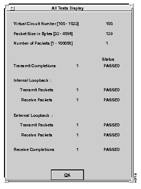 The Internal Loopback test transmits ATM packets between the local system and the Cisco ATM SBus adapter. No loopback cable is required.