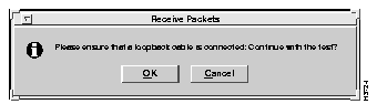 After the parameters have been set, the Test Confirmation window shown in Figure 6-8 appears. Verify that a loopback cable is connected and select OK.