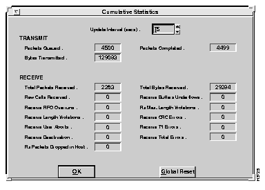 To display global statistics, select the Display Global Statistics option from the Driver Statistics submenu. The Cumulative Statistics window appears, as shown in Figure 6-10.
