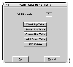 An ATM ARP server table must be defined to collect and maintain information required for virtual LAN operation. This window controls how the connection to the ARP server is set up.