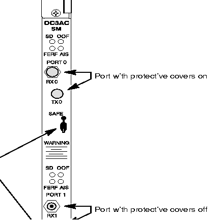 ![]() | Warning Do not look directly into the connectors on a single mode OC-3c access card whose Safe LED is turned off. The transmit laser can damage your eyes. |