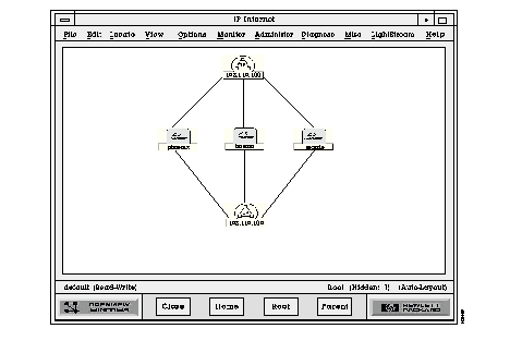 Step 1 In the OpenView Root dialog box, shown in Figure 3-2, double-click on the IP Internet icon. An IP Internet map is displayed (Figure 3-3).