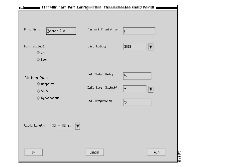 Step 2 Click on the push button below the number of the slot that you want to configure. This button is labeled Empty, or, if it has been previously configured, it is labeled with an abbreviation for the card type. After you click on a push button, card configuration attributes are displayed across the top of the dialog box (see Figure 3-7).