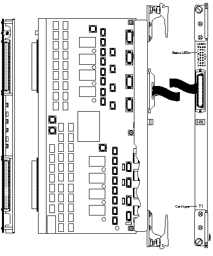 Figure 2-14 shows front, rear, and component side views of the T1 CEMAC. See Figure 5-2 for a similar view of the E1 CEMAC.