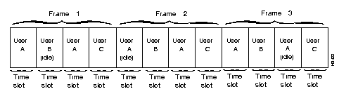 In TDM, communications channels are divided into fixed periods of time called frames. The frames are divided into a fixed number of equal duration time slots. Each user is assigned certain time slots within each frame. (A user can be given more than one time slot in a frame.) See Figure 1-1.