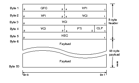 Every ATM cell is 53 bytes long. The first five bytes contain header information and the remaining 48 bytes contain the payload.