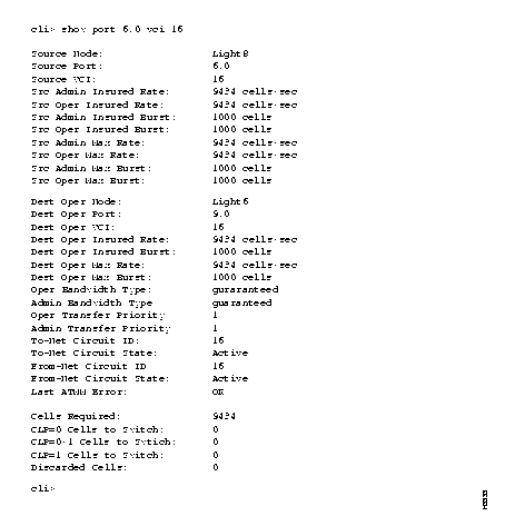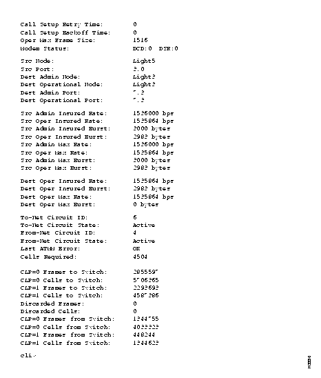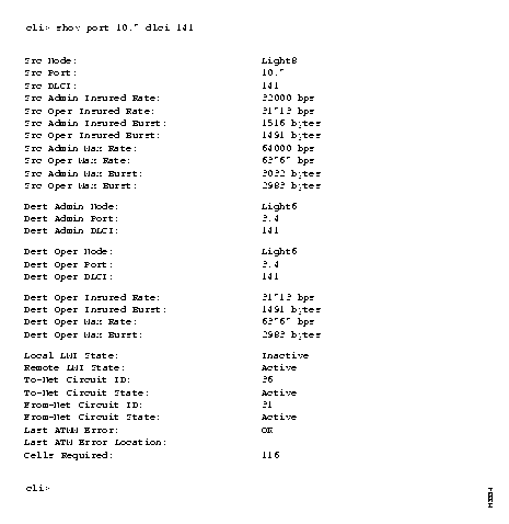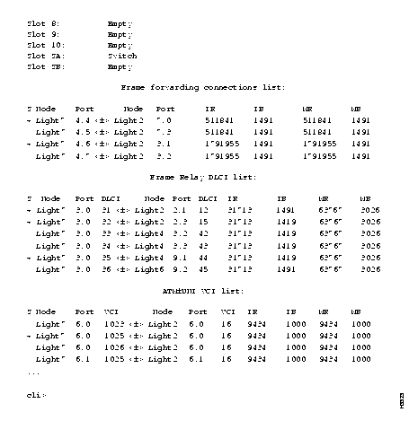 <port#> = The number of the port for which information displays. The port number is in card.port format (card = 2 - 10; port = 0 - 7).