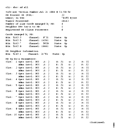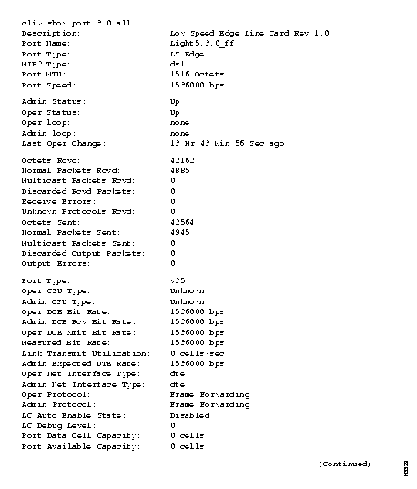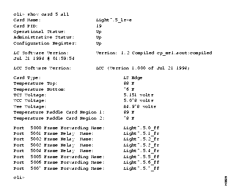 When you enter show card 5 all, information similar to the following (for a low-speed edge card) is displayed as shown in Figure 4-3: