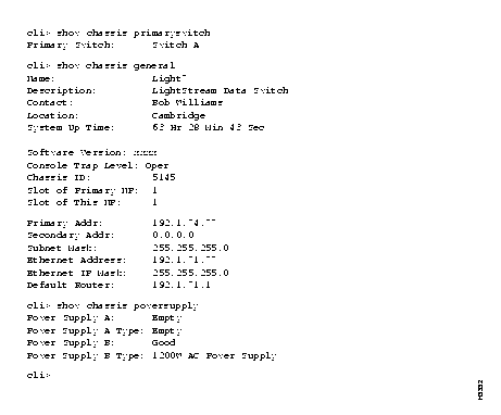 Figure 4-1 and Figure 4-2 show what information displays when you enter show chassis all.