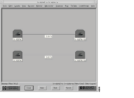 As previously mentioned, once you start HP OpenView, it can create any number of maps and each map is able to be configured to build an LS2020 topology. However, you do not view a map directly. You view the submaps that make up the map. A submap is a particular view of the network environment. Each submap displays a different view of your map. The application creates a Root submap for each LS2020 map. The Root submap provides a standard, top-level submap for every network map.