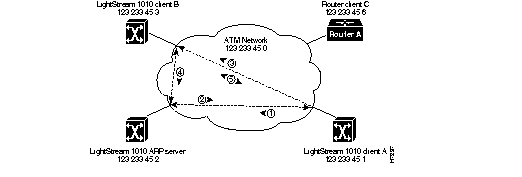 Figure 13-1 describes the steps needed to set up a classical IP over ATM connection between LightStream 1010 ATM switch client A and client B.