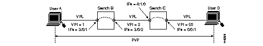 This chapter uses the following virtual path (VP) and virtual channel (VC) terminology: