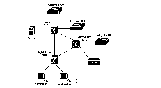 Figure 1-7 shows an example of a network configuration using the LightStream 1010 ATM switch in a LANE network.