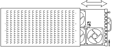 The fan tray, shown in Figure 4, consists of seven fans enclosed in a metal tray. The fan tray is located in the subchassis on the left side of the Cisco uBR7246 universal broadband router when viewing the router from the front (refer to Figure 1). The fan tray receives DC-input power through a power connector that connects to the router midplane.
